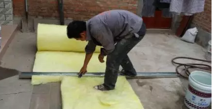 杆件冲突的地方用小块的玻璃棉进行补填,用脚踩实。